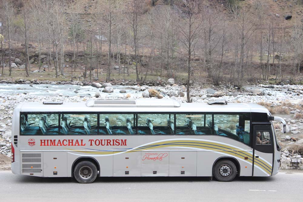 Arrive at bus stand (Pick Up Point - Majanu Da Tila, New Delhi At 05:00 Pm And Arrive Manali At Around 07:00 Am). Travel full night in Volvo bus from Delhi Bus stop to Manali Bus stop.